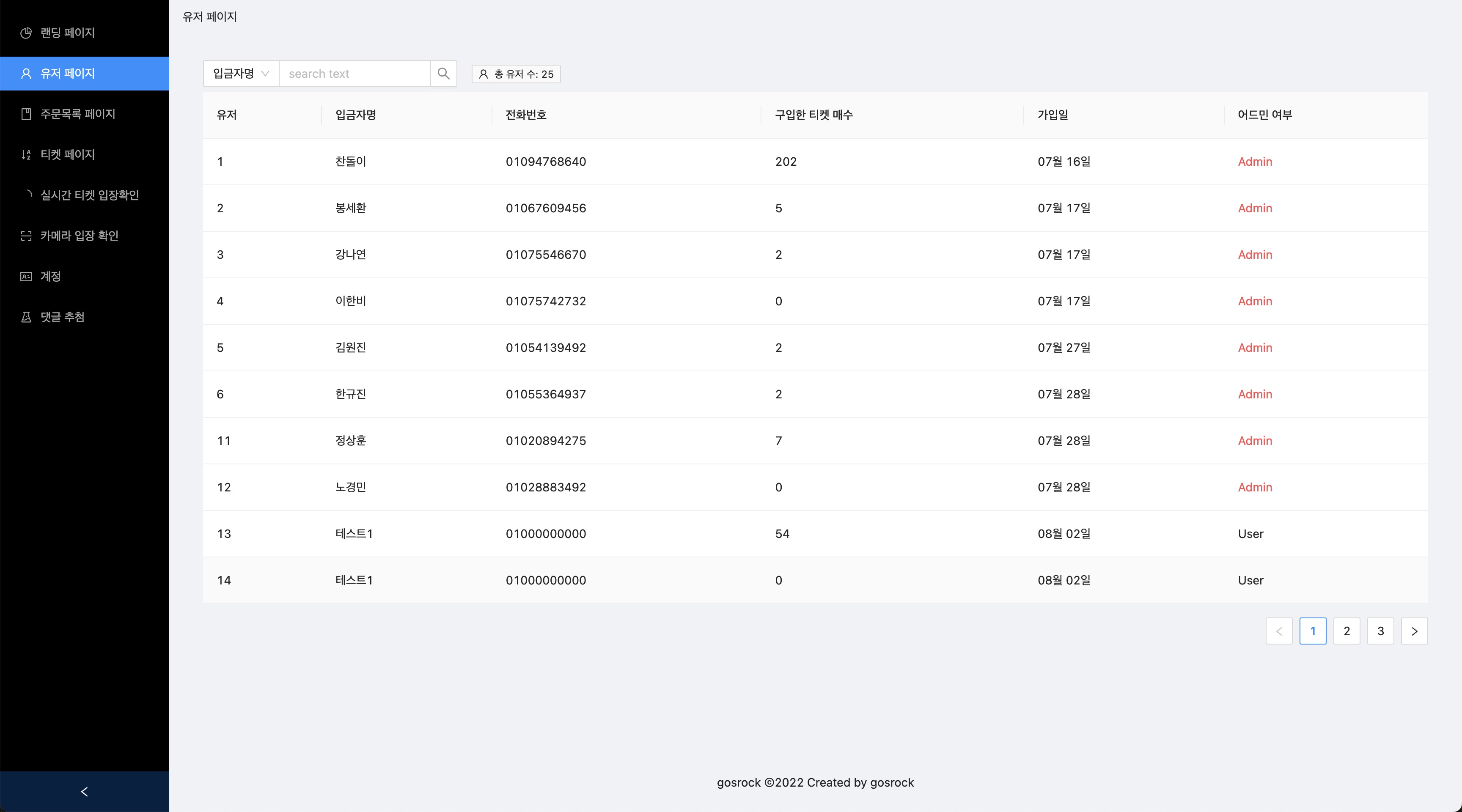 고스락 티켓 예매 프로젝트에서 어드민은 단순 데이터 조회나 변경 뿐만아니라 실시간 입장확인 기능까지 중요한 포인트들을 맡는다.