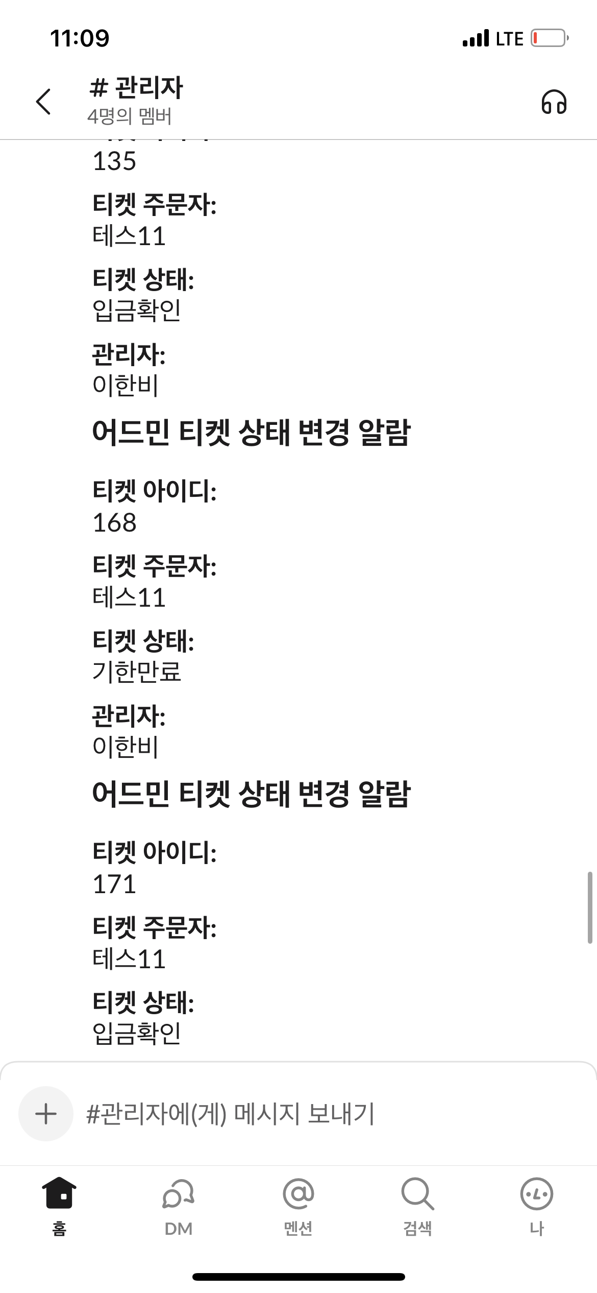 요번에는 운영진들의 편의나 디버깅을 위해서 , 티켓상태의 변경이 일어났을 때나 새로운 주문이 생겼을 때 슬랙으로 알림이 오게 끔 했다.