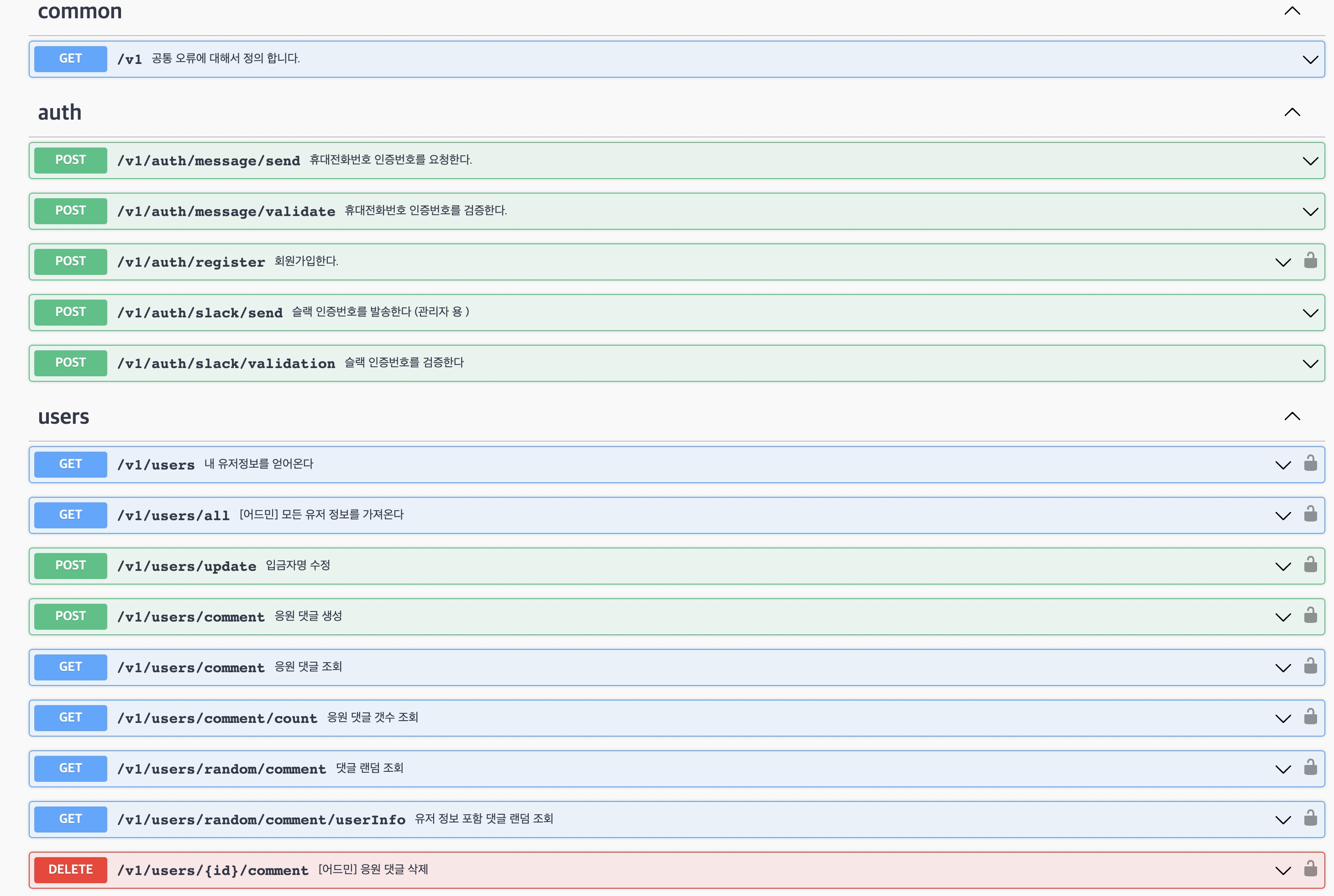 요번엔 스웨거 사용해서 문서를 만들었다. api는 저번보다 두배? 정도 늘었고 밑에 티켓이랑 주문 관련 스웨거도 더 있다 ㅋㅋ