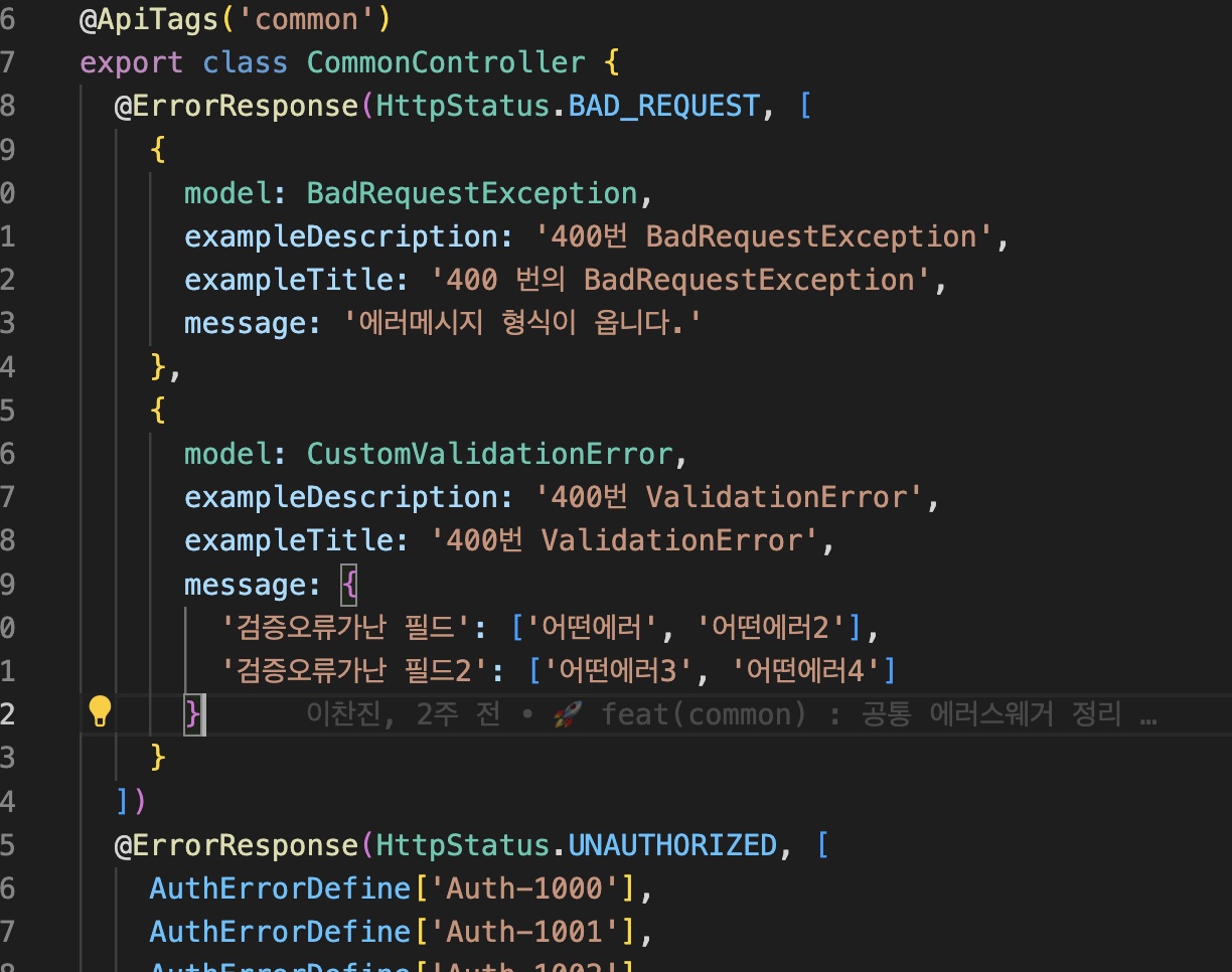 간단하다 고티켓은 공통에러 부분을 정의내리고 사용중이므로 ErrorCommonResponse를 사용중이다..