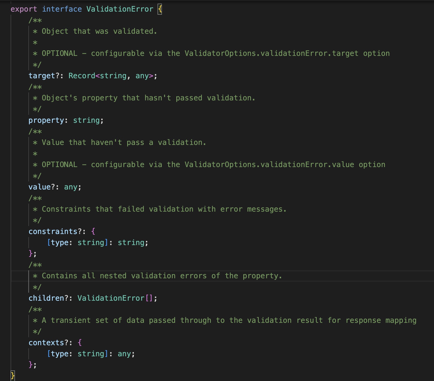 ValidationError[] 형으로 인자를받고 일단 CustomValidaitonError의 생성자로 넘겨주었다.