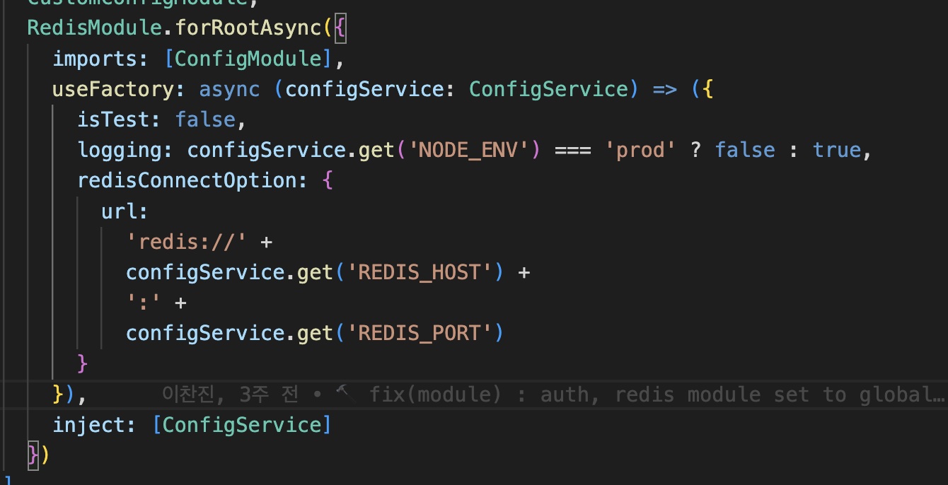 우리는 useFactory 를 돌리면서 redisAsyncConfig 에 인자로 적어줬던 inject를 적으면서 useFactory에 의존성 주입을 해줄것이다.