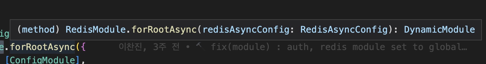 다시, RedisModule 내부에 forRootAsync 스태딕 메소드를 통해,
