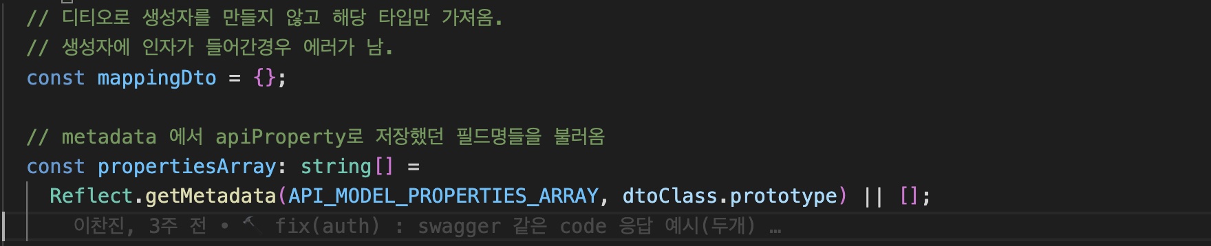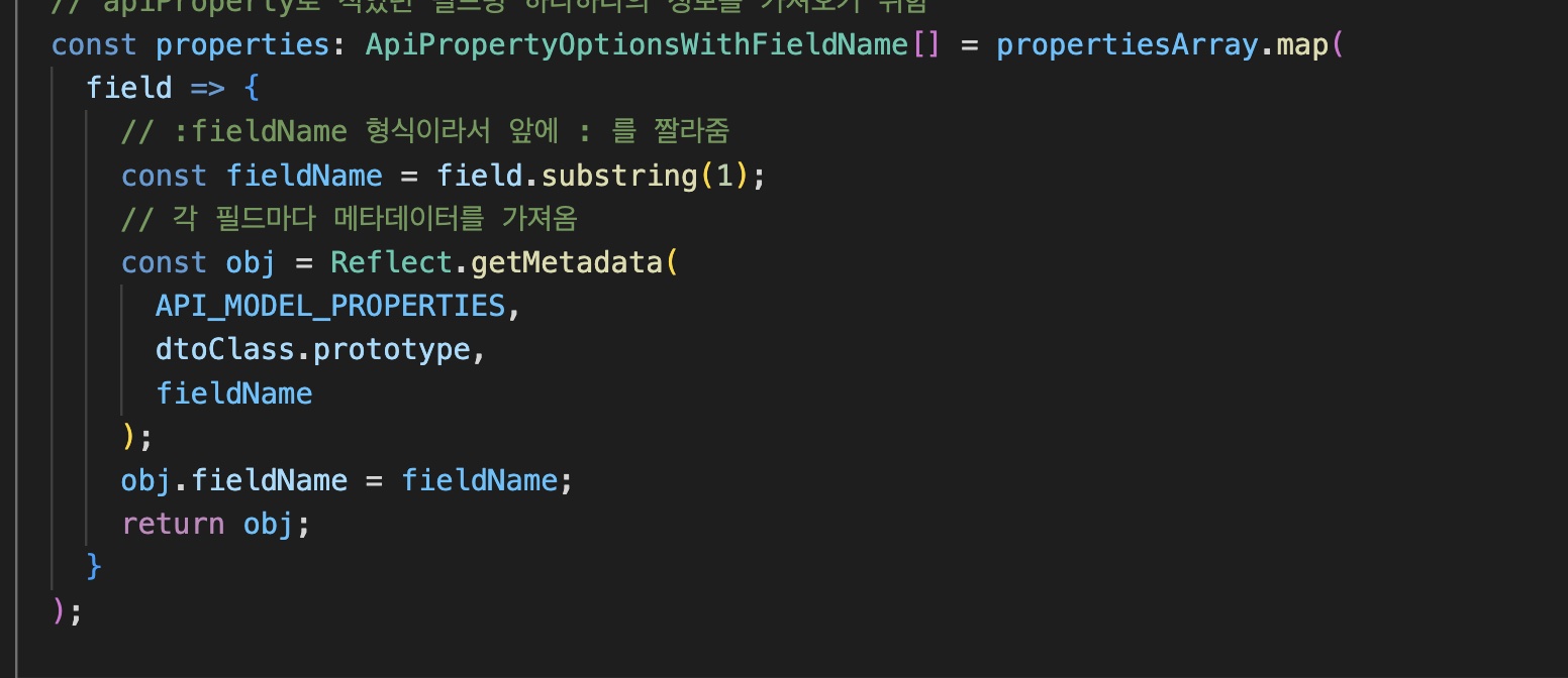 - 디티오 클래스에서 @ApiProperty 가 적힌 필드정보 가져오기