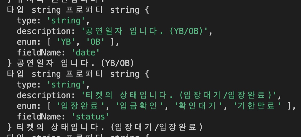 - 각 필드정보에서 @ApiProperty에 기술한 정보 가져오기
