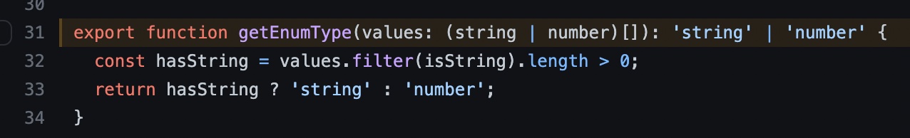 ( 중요 46번째줄에 getEnumType 때문에 value가 숫자형 이넘이면 nubmer 로 value가 스트링이면 string으로 적히는데 밑에서 한번 다시 언급하겠다)