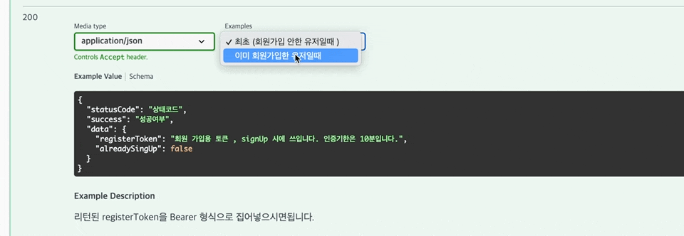 또한 응답 예시 (Example Value ) 를 어느 경우엔 어떤 응답이 온다고 알려주고 싶으면