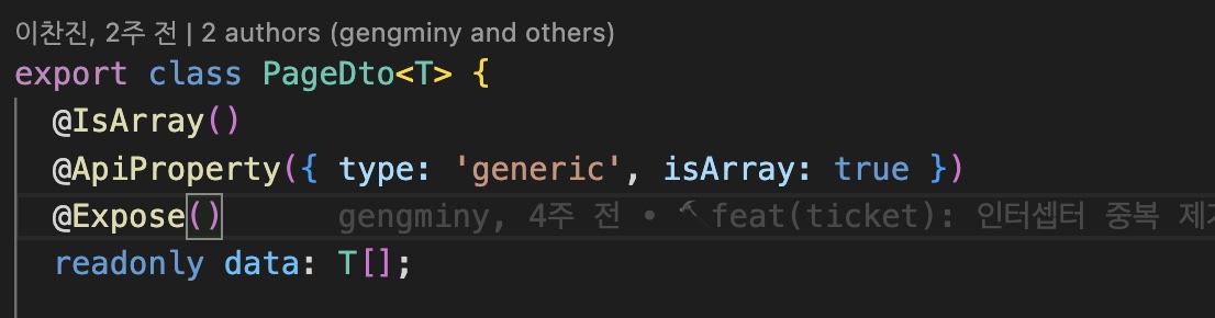 // dto에 T 제네릭으로 들어가는게 있다면 type을 generic 으로 적어주세요