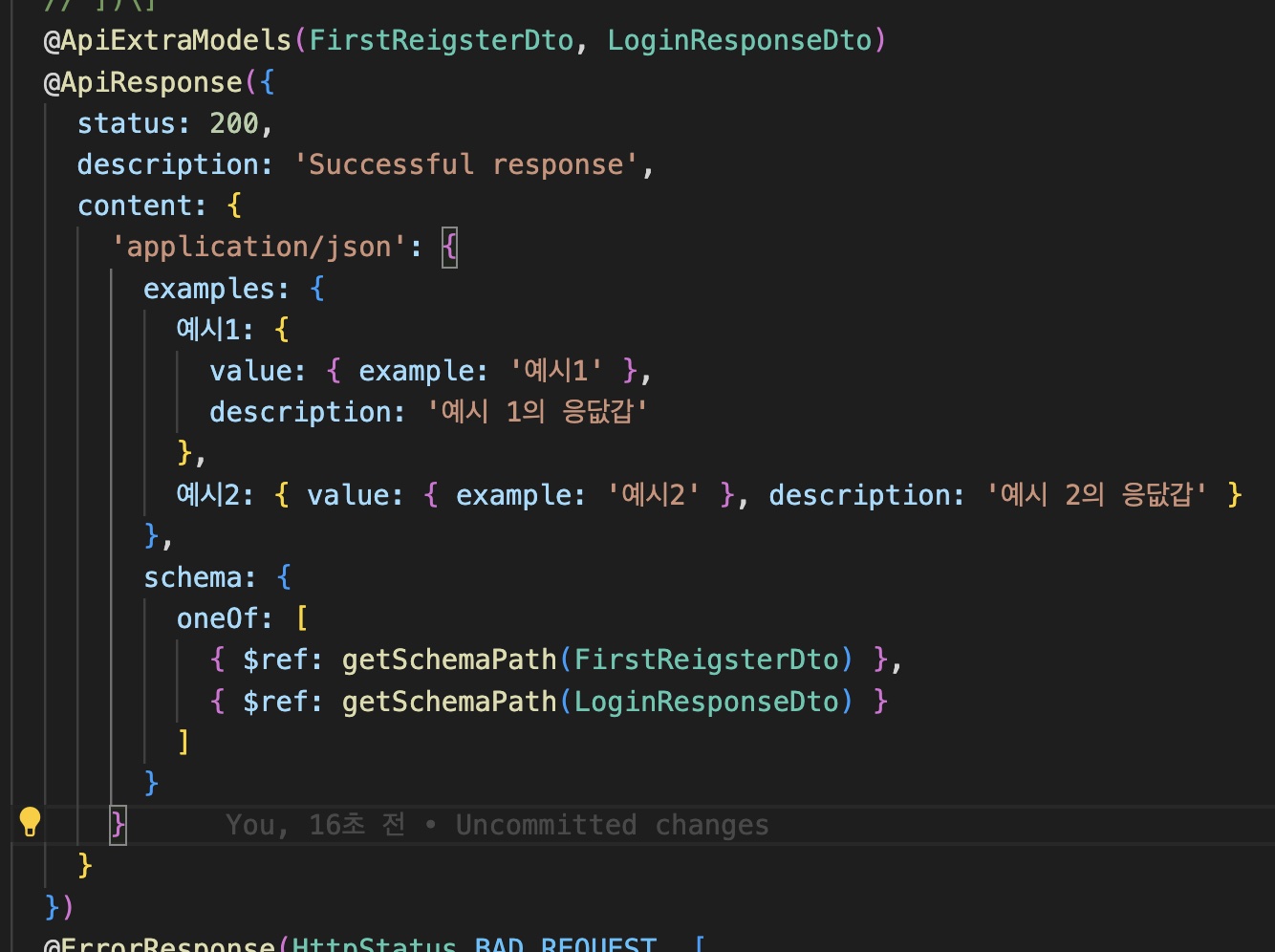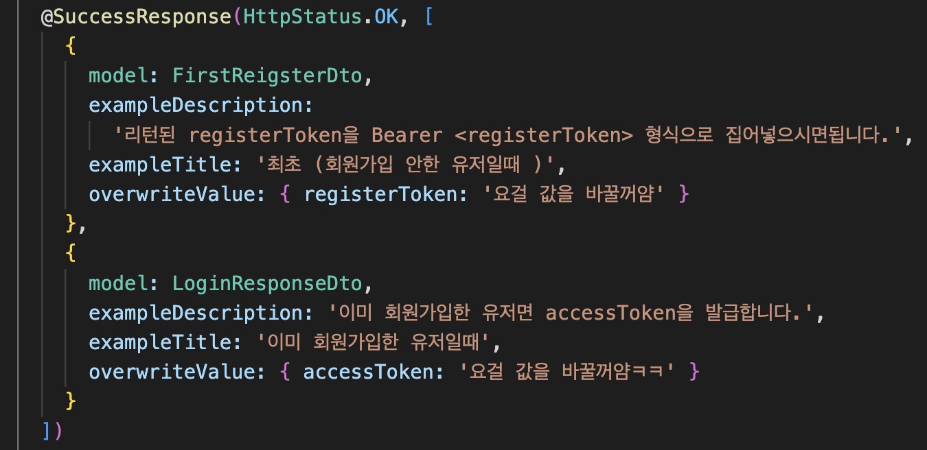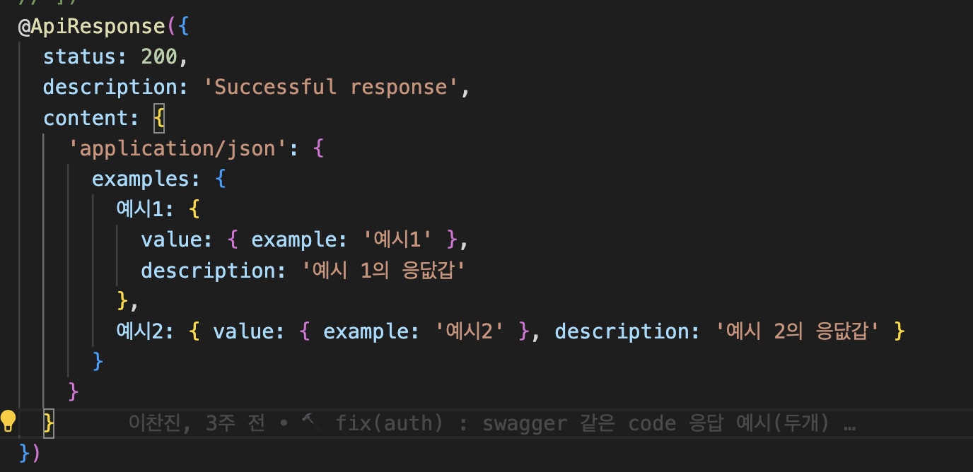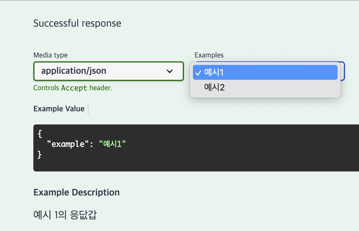 - 같은 코드에 여러 성공응답 예시 작성하는방법