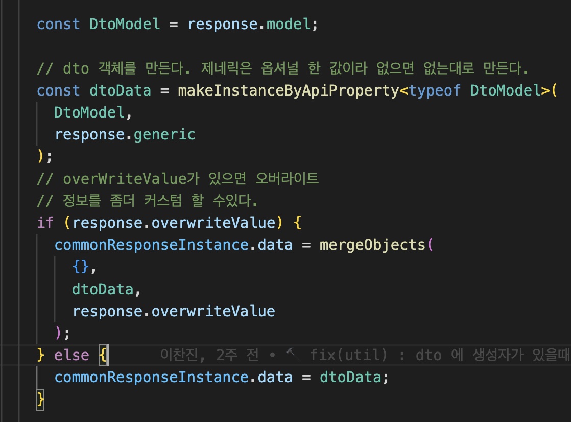 (1)편에서 봤듯이 generic 으로 타입을 지정해주면, makeInstanceByApiProperty 함수를 통해서 객체를 만들 때 generic 인자로 제네릭 모델 타입을 넘겨주면 data필드부분에 해당 타입으로 객체를 만들어서 리턴해준다.