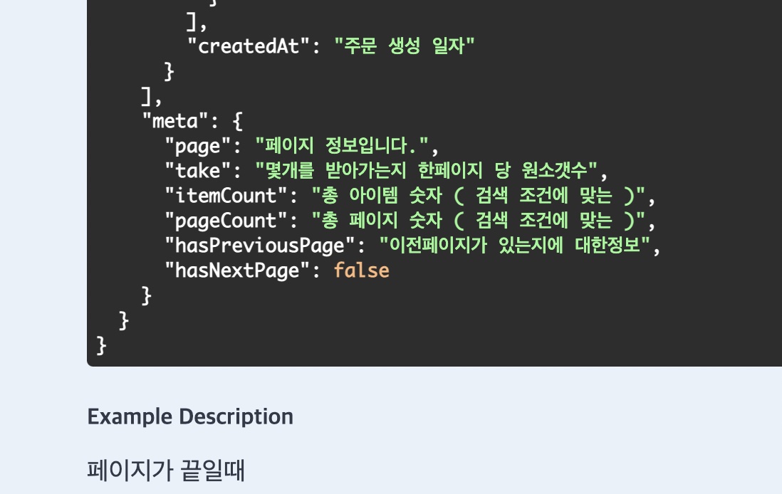* 어떠한 상황일 때 예시형태의 응답값을 주는지 기술 합니다.