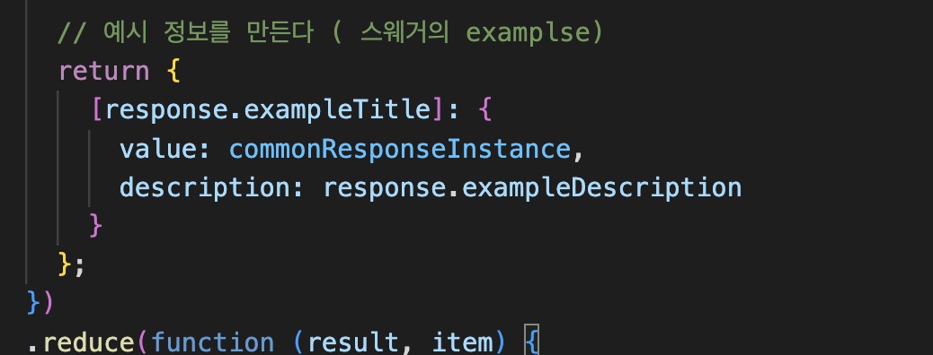 example 부분엔 우리가 map 함수를 통해 예시를 만들어서 반환해줄꺼다. value와 description 있고