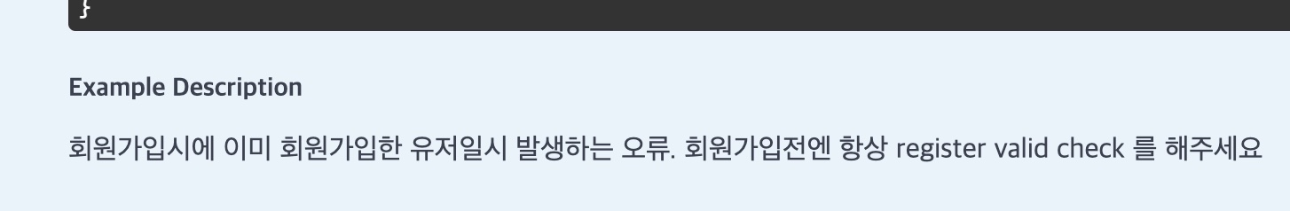@ExplainError("회원가입시에 이미 회원가입한 유저일시 발생하는 오류. 회원가입전엔 항상 register valid check 를 해주세요")