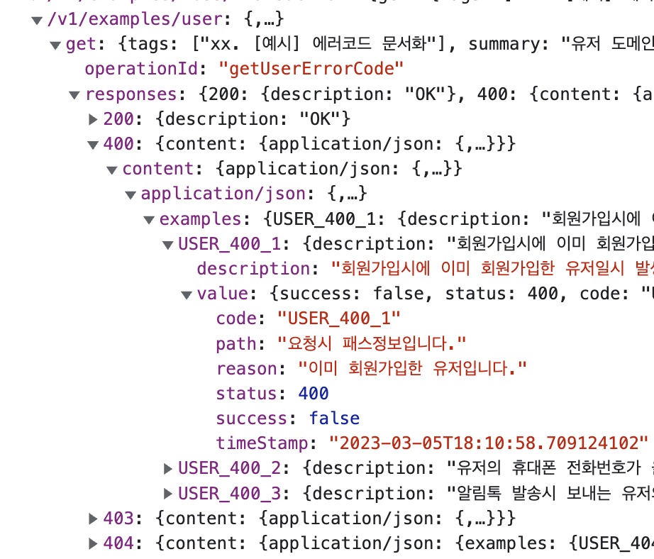위와같은 형식으로 상태코드를 기준으로 예시객체들을 모은뒤에,