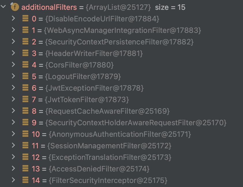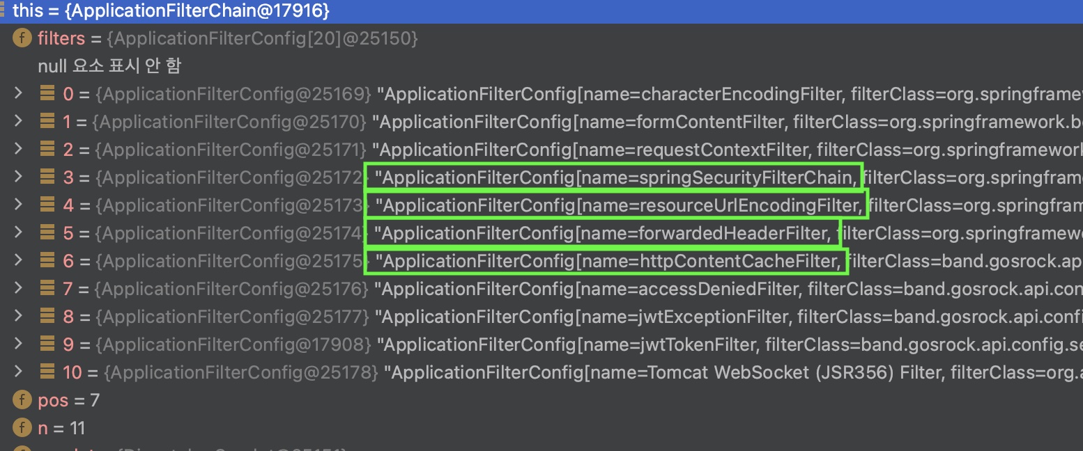 해당 필터들은 스프링 시큐리티 필터에서도 등록되어 사용되어지고있다.