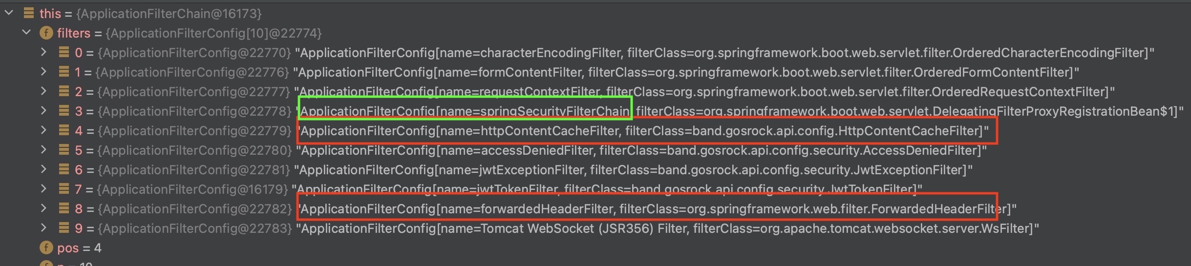 위와같은 조건들로 인해서. ForwardedHeaderFilter 가 작동하게 된것이다.