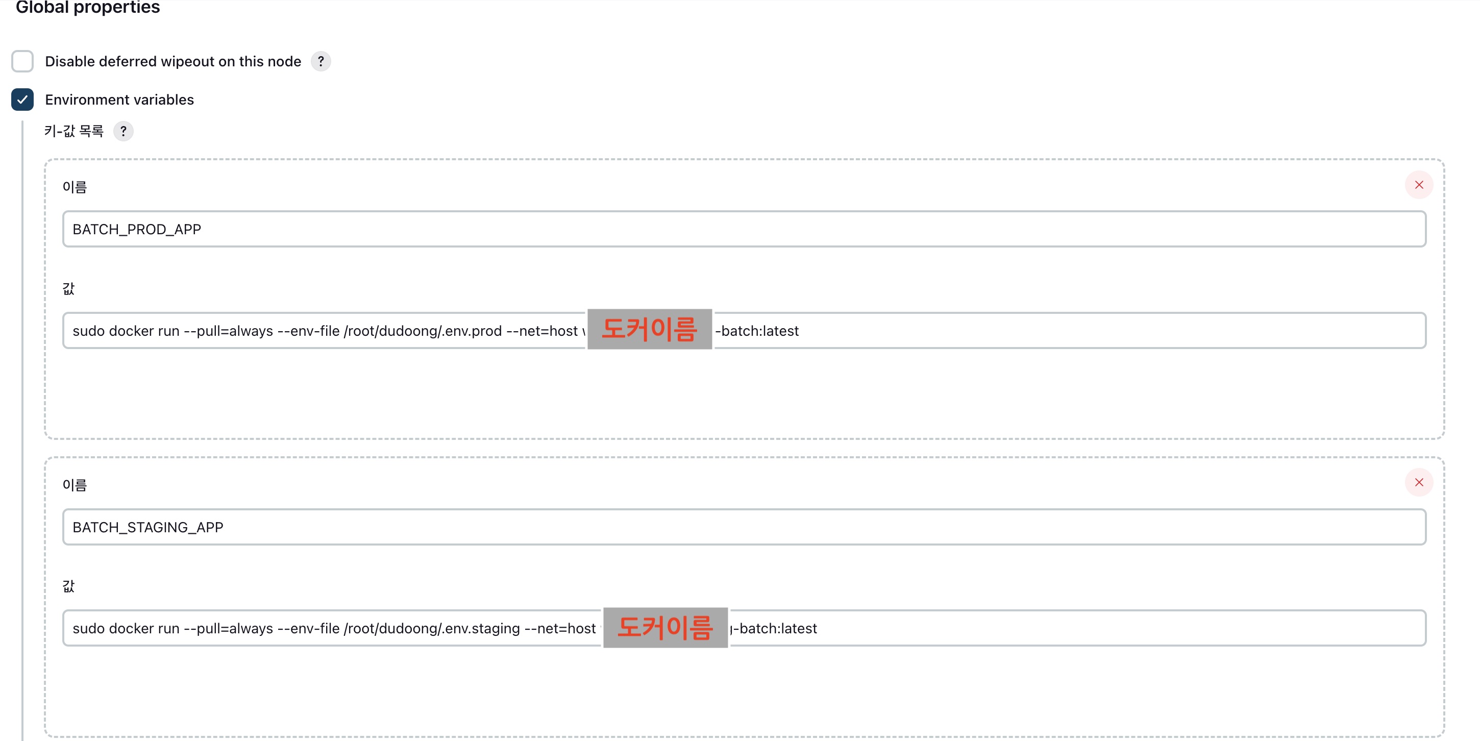 두둥에서도 위와같이 프로덕션용과 스테이징용을 환경변수로 나누어서
